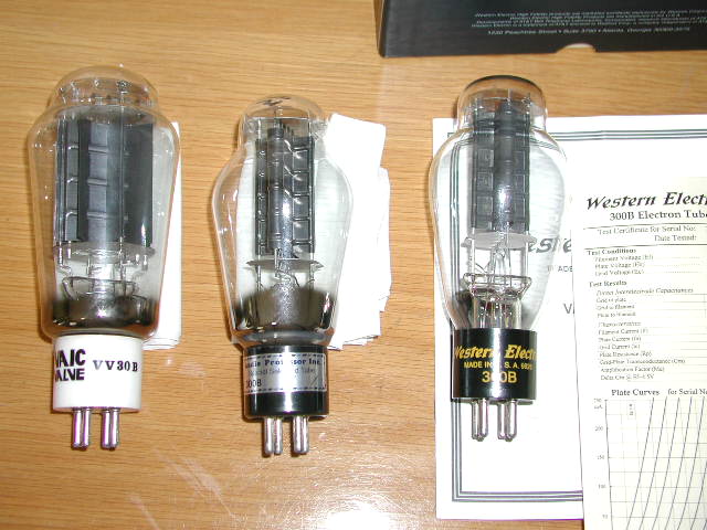 | meiteiさんに 他のメーカーの300Bを お借りする。 左はVV30 力強い 低域がパワフルな音 中央はオーディオ専科のキットに付属していた 中国製選別球。 私はこの球が一番気に入りました。繊細で美しい 響き。中国製と言えば低品質なイメージでしたが これはとても良かったです。 繊細なシングルアンプの美点が生きている。 WEの300Bは繊細で倍音が美しい感じ。 でも低域がちょっと弱い。 トータルではWEが良いですが 他が全然ダメという ことはありません。 掲示板 http://wanko.cside8.com/FBBS/cyclamon.cgi?tree=s3819#3819 掲示板2 | |