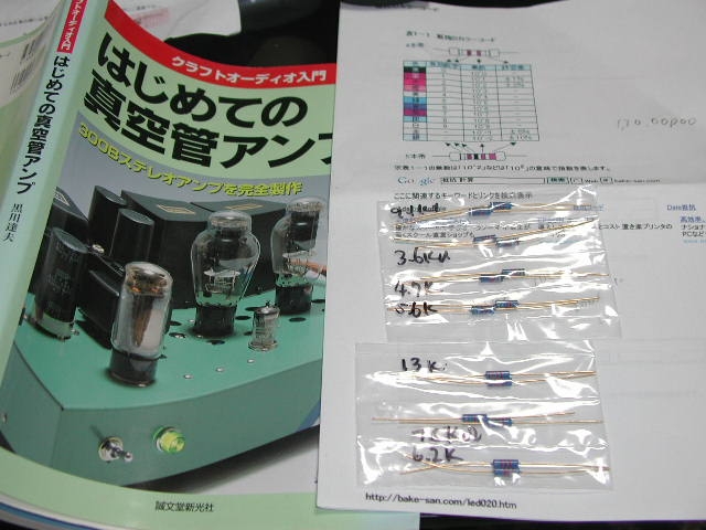 通販で抵抗をかい 適当につないで変化を聴き比べようとする。 |