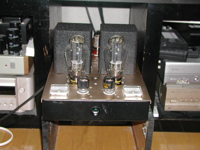 | けんけんさんに造ってもらった 300Bシングルアンプ。 当初は2A3のロフチンホワイト回路の アンプでした。 2A3アンプ とても綺麗な音で今でも高音は最高ではないか? と記憶しています。ただ もっと力があるアンプ。 名高いアンプで300Bシングルに変更してもらいました。 最初の300Bシングル 当初は硬いバリバリした音で驚きました。 その後落ち着いてきてNFBをオーバーオールから 出力管からの帰還に変更、その他でセッティングして もらいました。 変更された300Bシングルアンプ 美しい中高音 爽やかな音 かまぼこだけど 音楽に浸りやすい楽しい音です。 残念なのは、現在けんけんさんと連絡が 取れずにアドバイスを頂戴できないことです。 | |