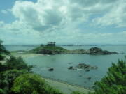車窓から見る、記憶に鮮明な蕪島。