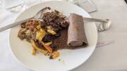 テフと言う粉を発酵させてスポンジみたいに焼いた上に